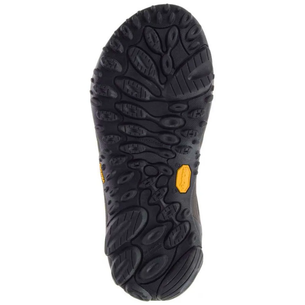 Diese Trekking-Sandalen sind mit einer Vibram TC5+ Gummisohle ausgestattet , die dank des 3,5-mm-Stollenmusters einen sicheren Schritt garantiert und hervorragenden Grip und Traktion auf nassen Oberflächen bietet. Die EVA-Zwischensohle bietet Komfort, Dämpfung und Stabilität, während die Merrell Air Cushion Ferse die Unebenheiten der Geländeelemente verhindert und die Stabilität erhöht.