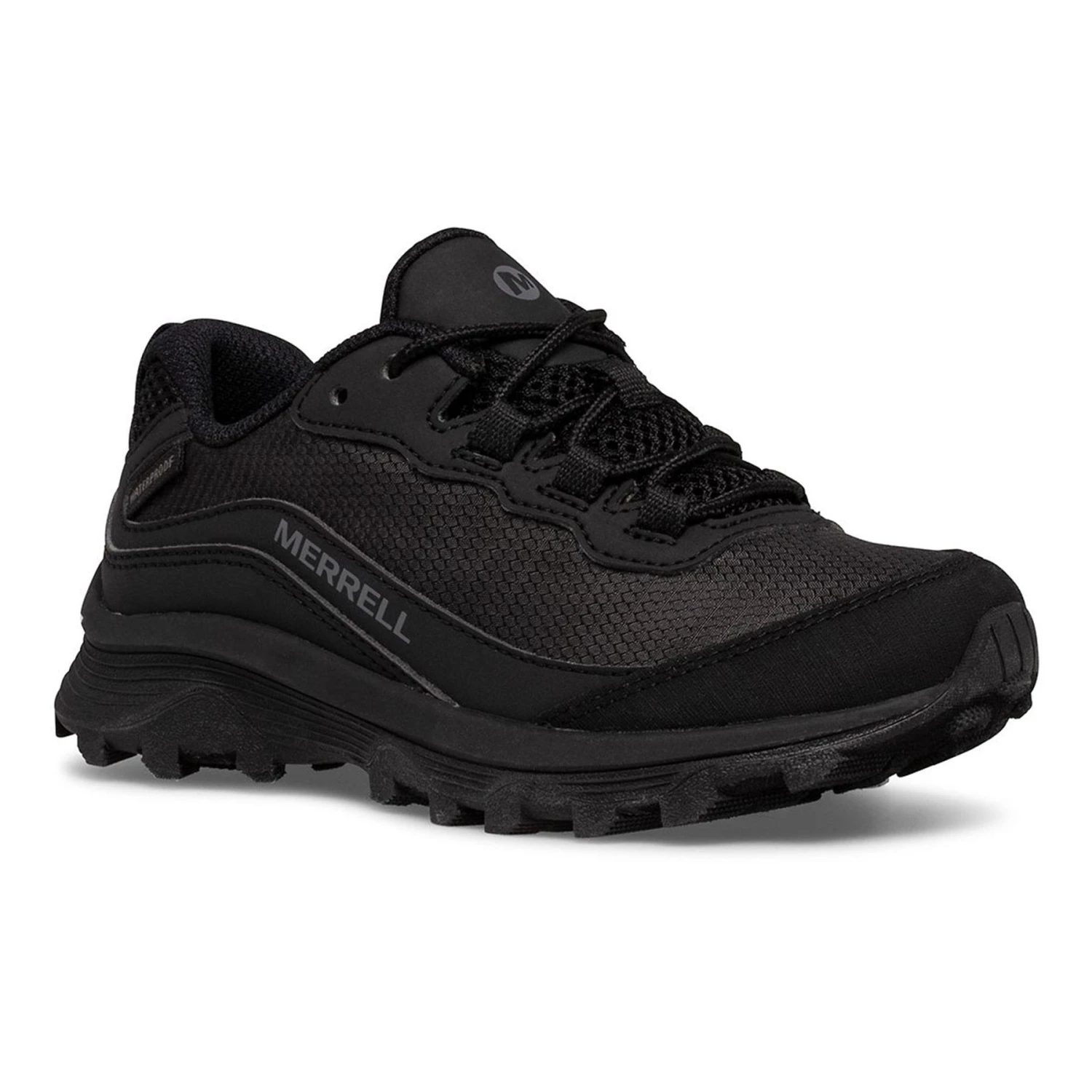Die Merrell Moab Speed Low Waterproof Kinderschuhe bestehen aus einem leichten Textilobermaterial, das sie hybrid, wasserdicht und atmungsaktiv macht. Auf der anderen Seite sorgt der traditionelle Schnürverschluss für einen bequemen und festen Halt. Die Zehenkappenverstärkung bleibt auch nach vielen Kilometern noch intakt, und die abriebfeste Gummilaufsohle bietet den besten Grip, wenn Sie ihn am meisten brauchen.